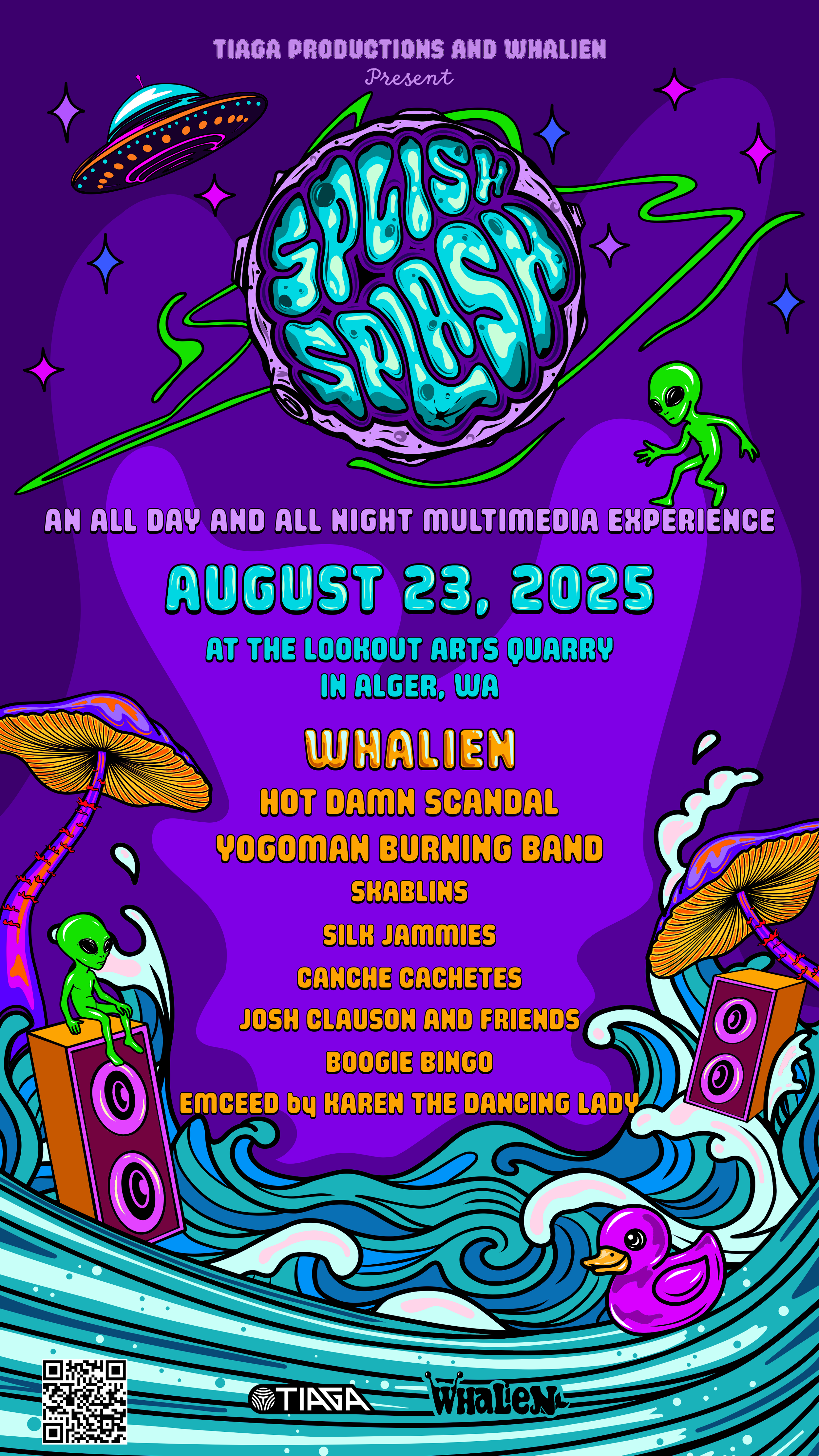 Whalien and Tiaga Productions proudly present Splish Splash. Please join us for a celebration of music, community, art, and entertainment amongst friends at the Lookout Arts Quarry near Bellingham, WA. Tickets Follow us on social Social