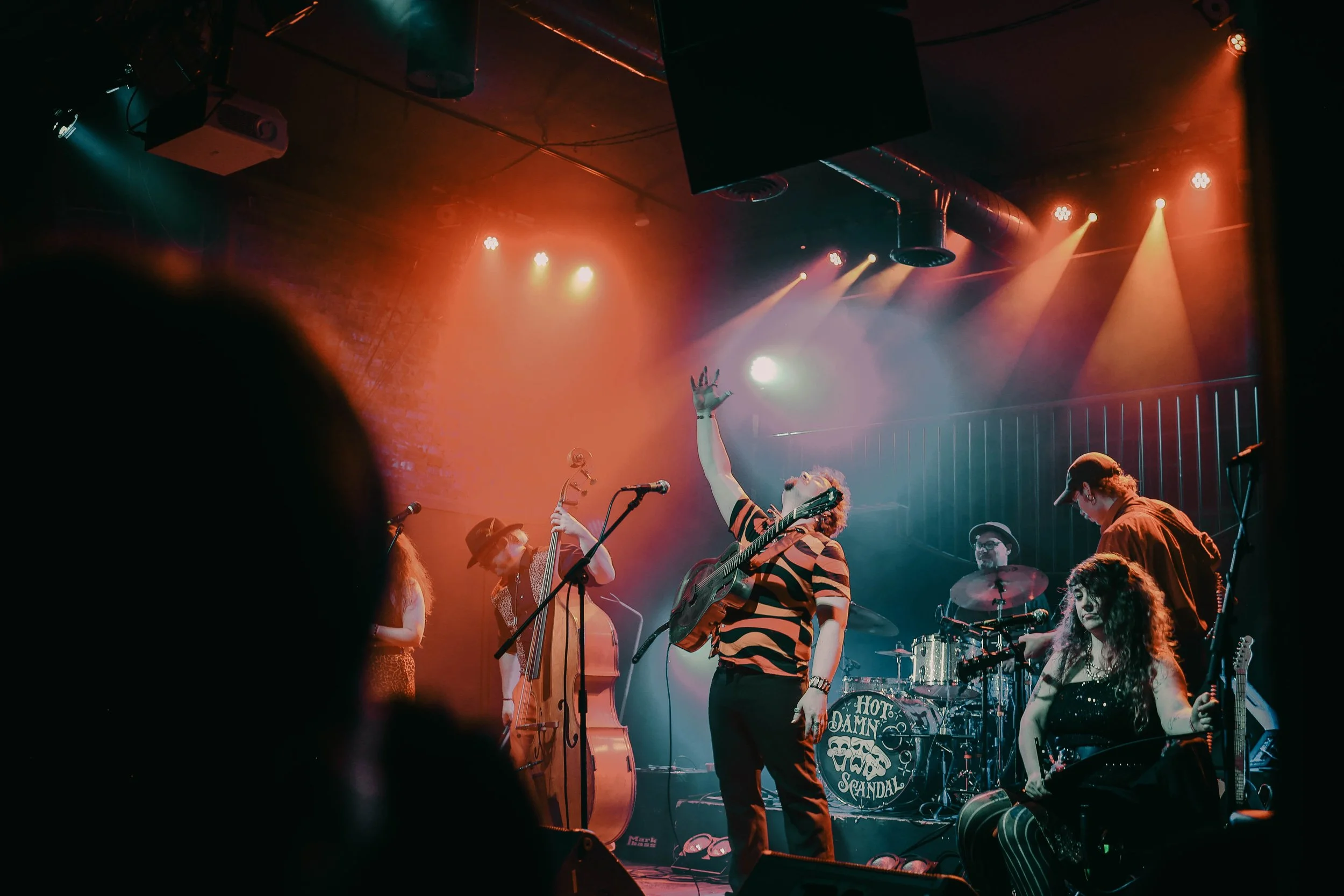 Hot Damn Scandal began as a nebula of traveling musicians formed around the songs of founder Pete Irving over 15 years ago. Firmly rooted in the Northwest since 2013, the band plays what they now describe as "Cabaret Americana"; a music found at the crossroads of Tom Waits and Gershwin. While the cast of characters stills rotates every so often the long time regulars are pretty consistent at this point: Mickey Stylin on the Bass, Ani Banani on the Musical Saw, Jimmy Austin on the Trombone, Jane Covert-Bowlds on the Tenor Saxophone, Kris Staples-Weyrauch on the Electric Guitar, and David Lofgren on the Drums are the most common compatriots to Pete's continued presence in the band.